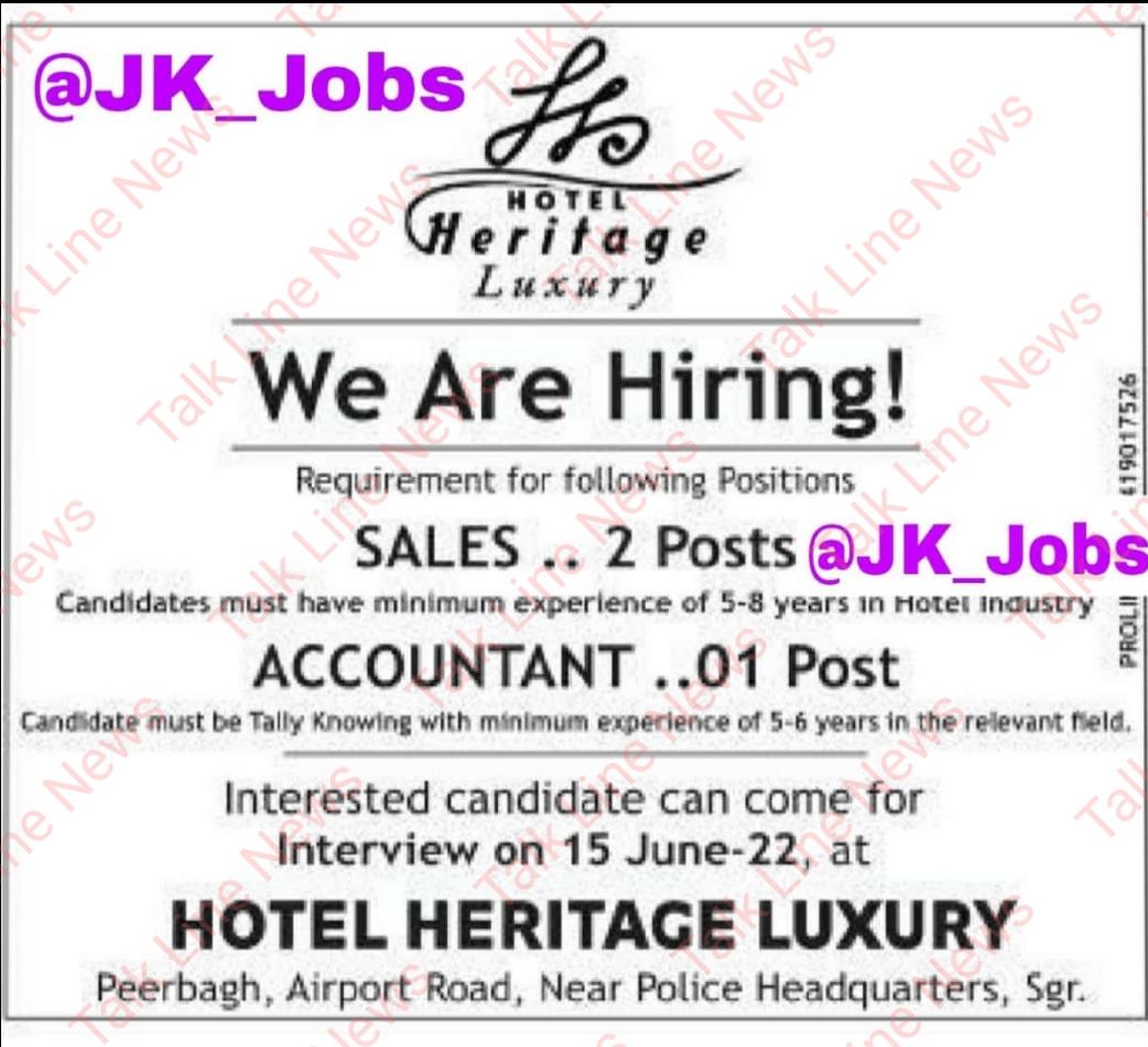 Hotel Heritage Luxury is Hiring
